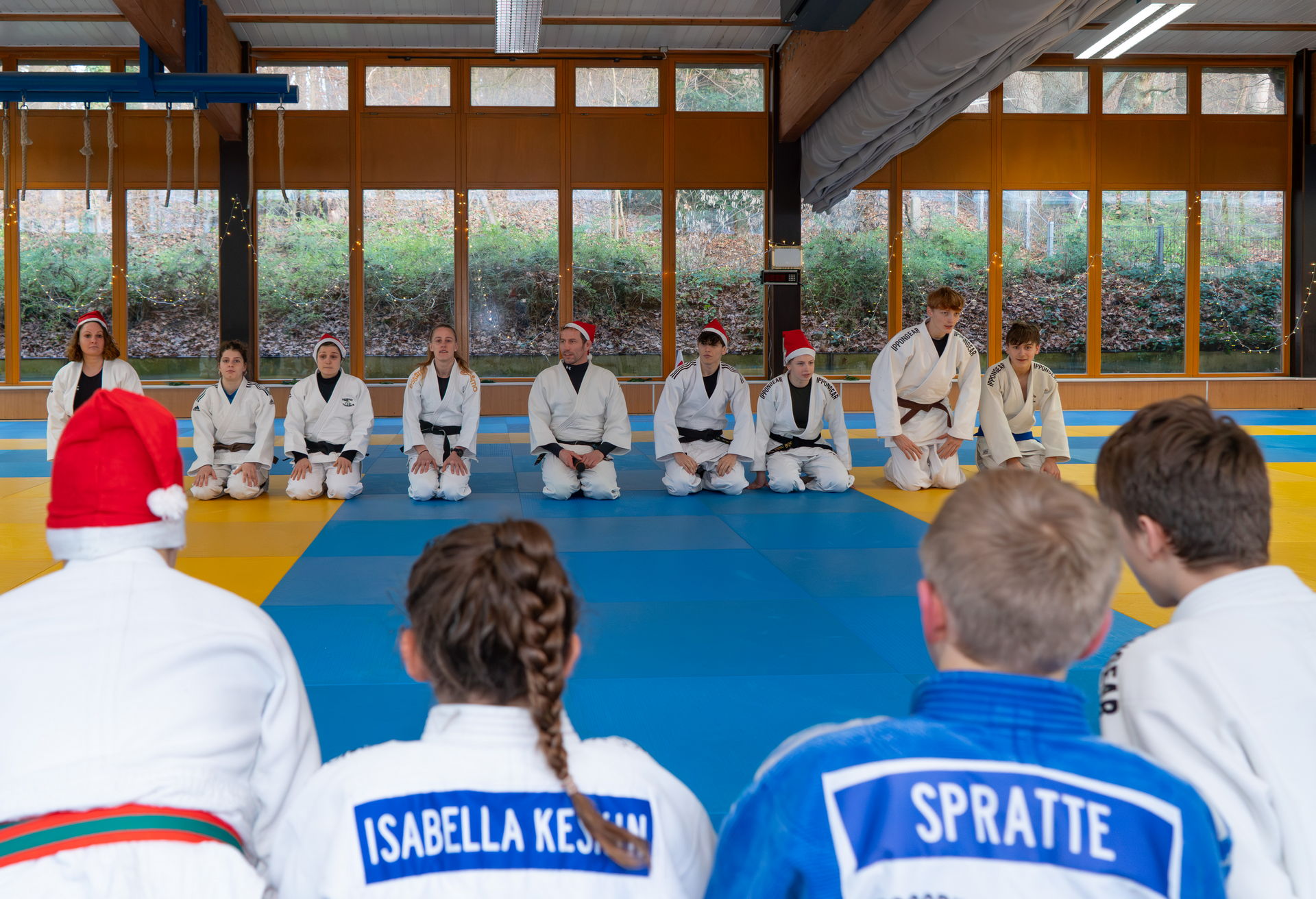 Einen stimmungsvollen Abschluss des Trainingsjahres 2025 bildete die Weihnachtsfeier für die Kinder und Jugendlichen der verschiedenen Trainingsgruppen gemeinsam mit Trainern und Trainerinnen, Eltern und Gästen. Nach einer kleinen Trainingseinheit wurden Schaukämpfe unserer Wettkampfathleten gezeigt. Im beliebten Mannschaftskampf „Klein gegen Groß“ konnten sich „ganz überraschend“ die Kinder stark behaupten. Den Abschluss machte ein Besuch des Nikolauses, der sich gerne auch noch einige gut ausgeführte Würfe zeigen ließ.