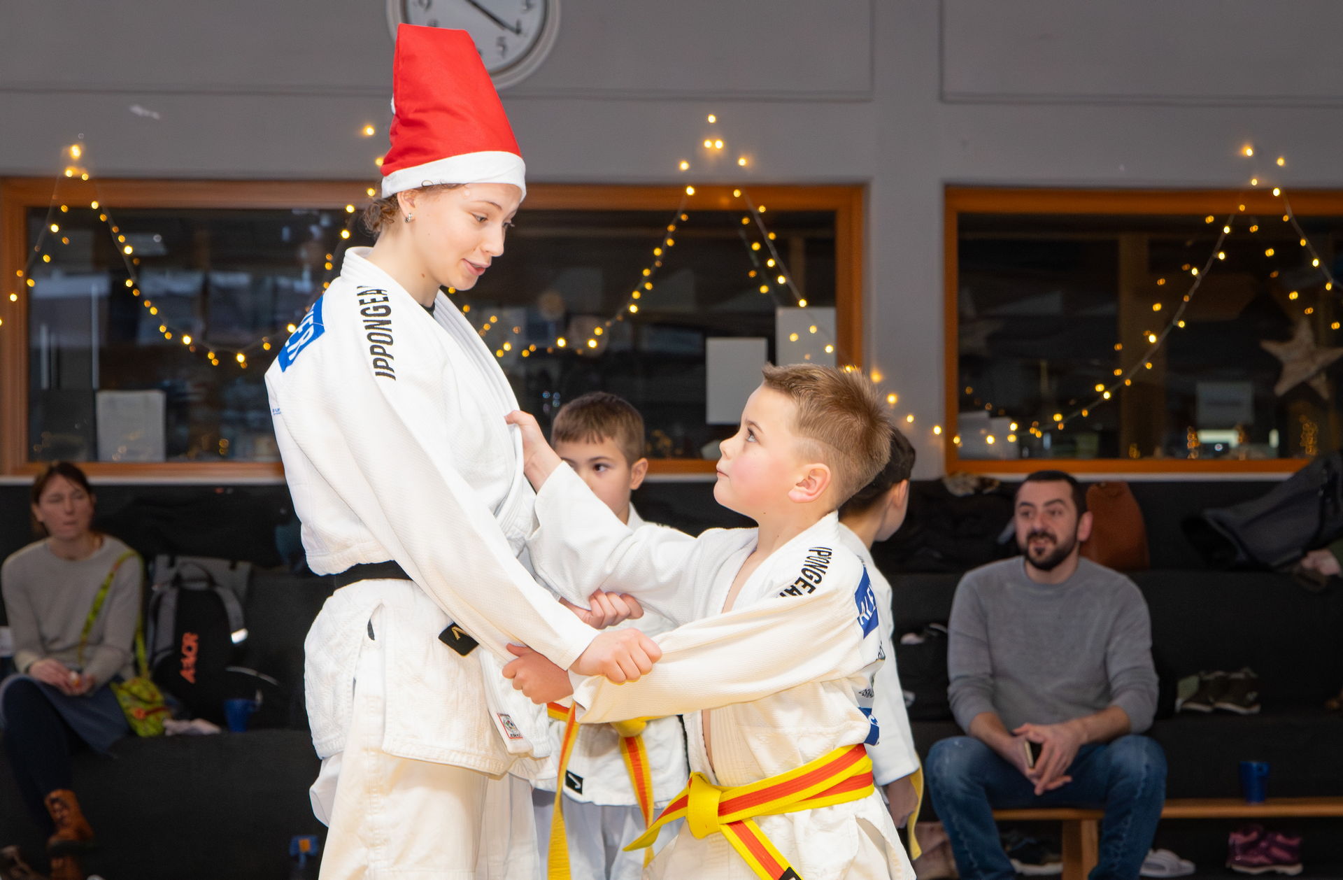 Einen stimmungsvollen Abschluss des Trainingsjahres 2025 bildete die Weihnachtsfeier für die Kinder und Jugendlichen der verschiedenen Trainingsgruppen gemeinsam mit Trainern und Trainerinnen, Eltern und Gästen. Nach einer kleinen Trainingseinheit wurden Schaukämpfe unserer Wettkampfathleten gezeigt. Im beliebten Mannschaftskampf „Klein gegen Groß“ konnten sich „ganz überraschend“ die Kinder stark behaupten. Den Abschluss machte ein Besuch des Nikolauses, der sich gerne auch noch einige gut ausgeführte Würfe zeigen ließ.